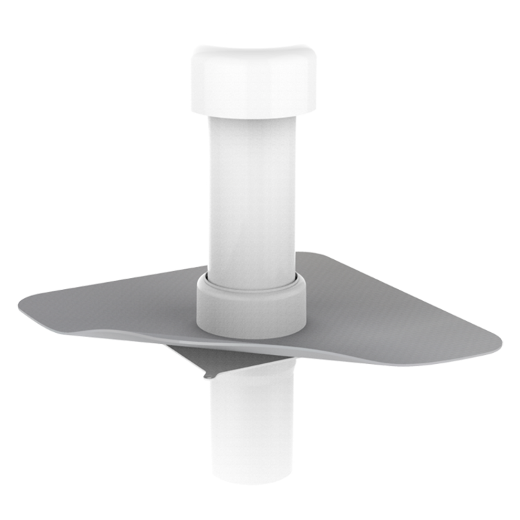 TOPWET sewerage ventilation for connection to vent piping with an integrated sleeve of PVC membrane, including a rain cap. Height above insulation 300 mm (max. 500 mm), depth under insulation 200 mm (max. 1000 mm).